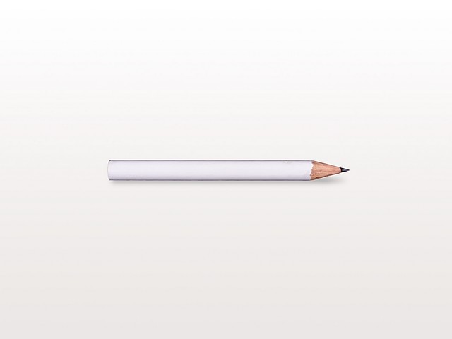 Der runde, weisse Kurzbleistift mit einer Minenhärte HB ist mit einem feinen Schutzlack überzogen. Beliebt an Golfplätzen und ist personalisierbar.